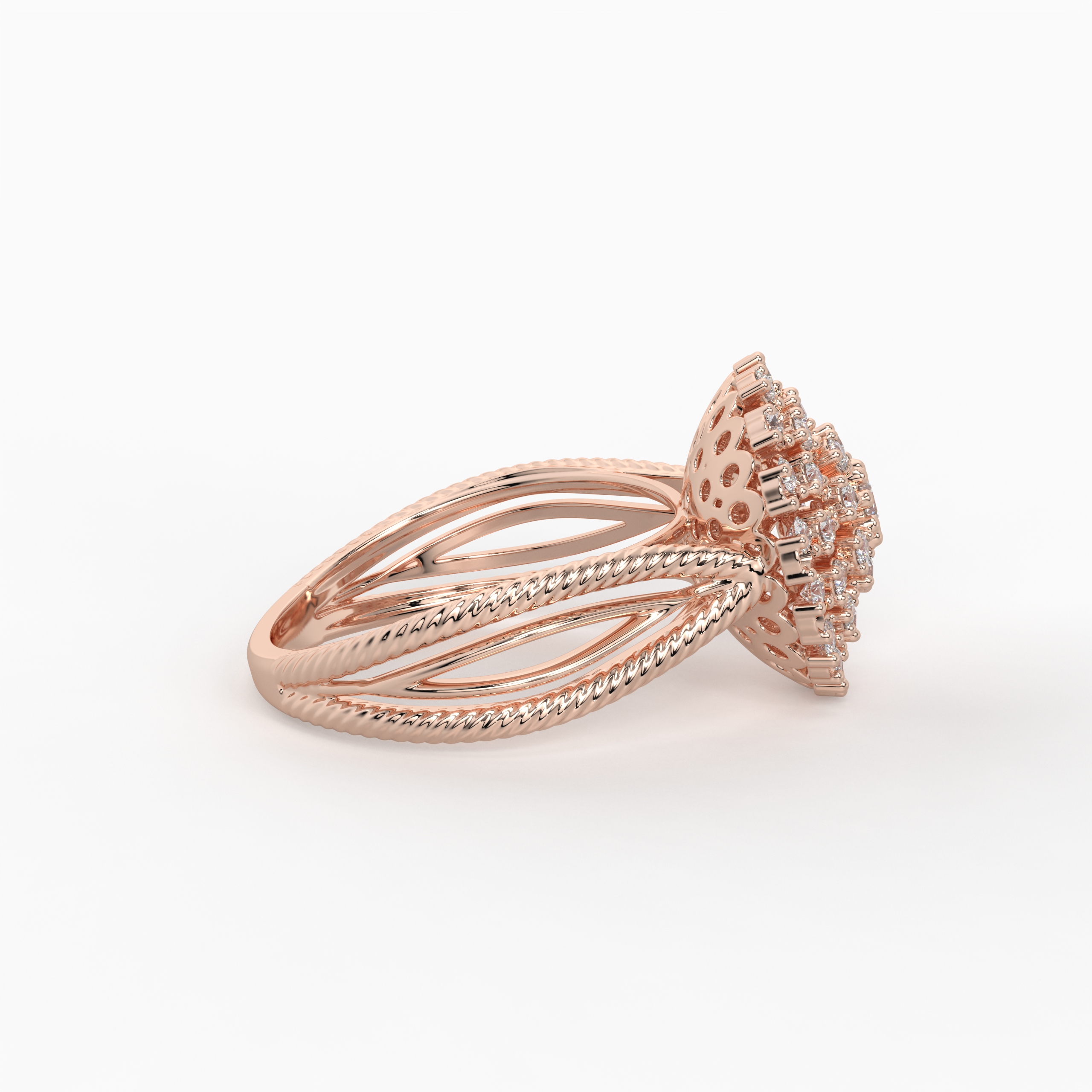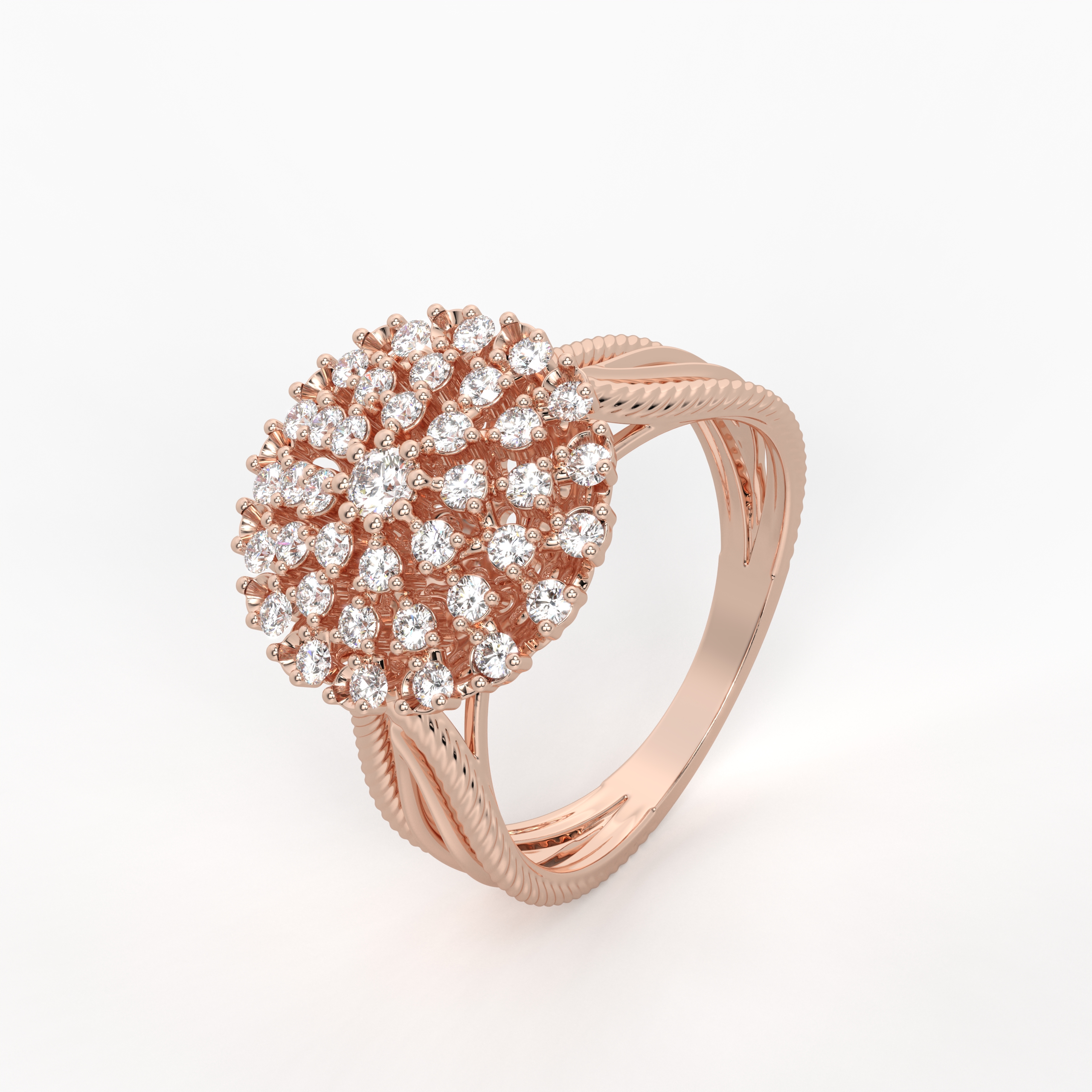 Gracefully designed with diamonds scattered along the surface, this ring captures effortless brilliance. The uneven yet balanced placement enhances the individuality of each diamond, offering a soft and contemporary glow. A refined piece for women who appreciate subtle luxury.