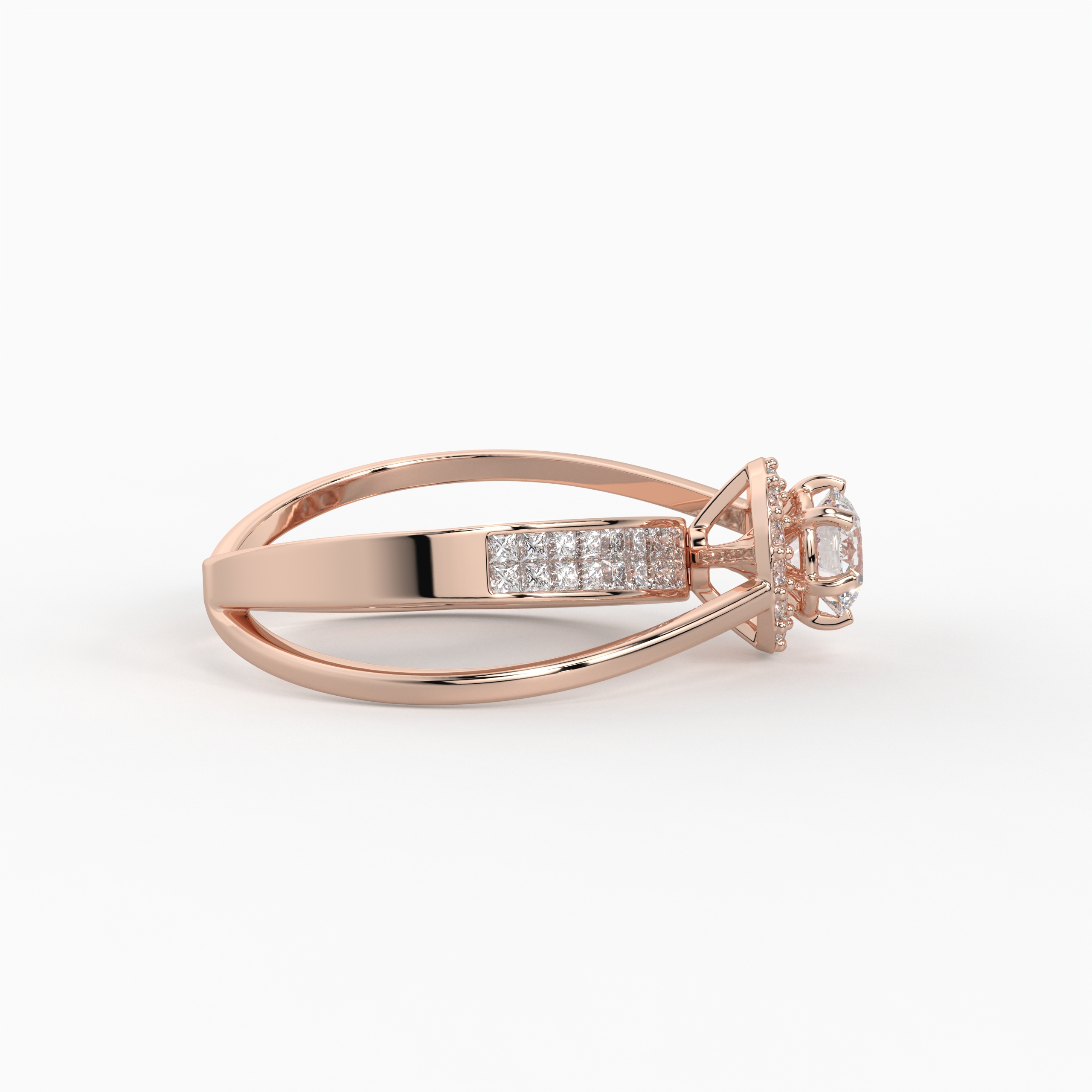 Luxurious and commanding, the Infinity Prestige Ring features a sparkling round solitaire gracefully positioned above a seamless princess diamond panel. The invisible setting creates a flawless, mirror-like surface of light, making this ring a powerful symbol of love and commitment.