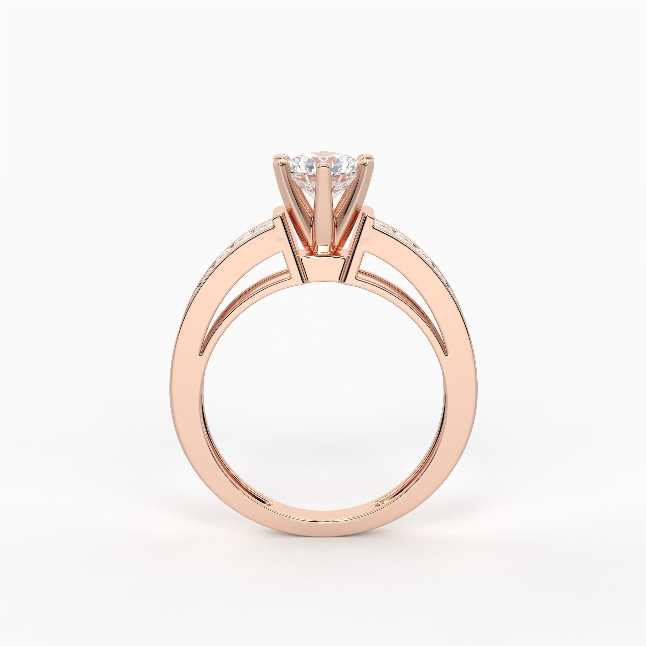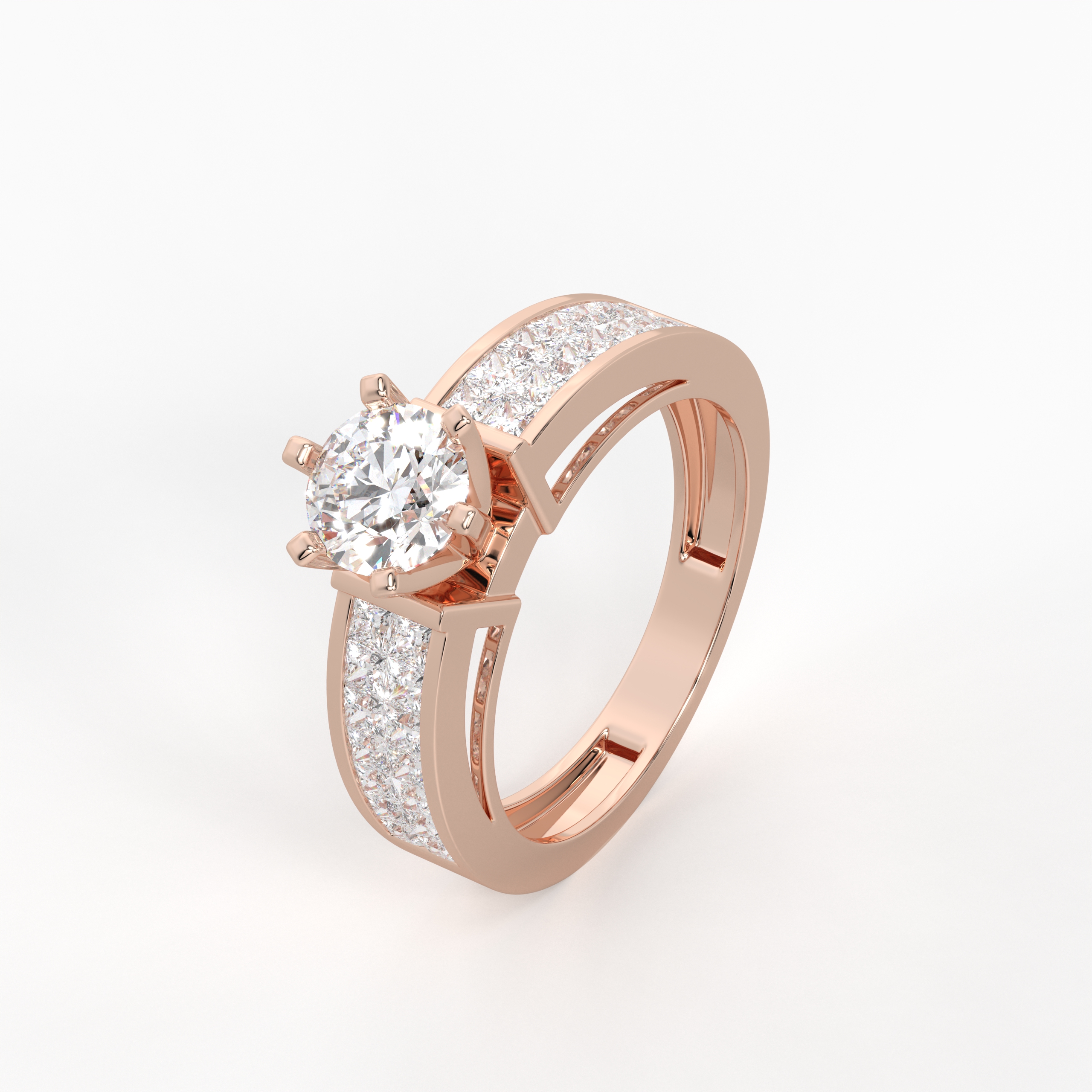 The Zenith Illusion Ring is a statement of refined innovation. A brilliant round solitaire appears to rise from a seamless bed of princess-cut diamonds invisibly set along the band. The uninterrupted diamond surface enhances depth and drama, delivering couture-level luxury.