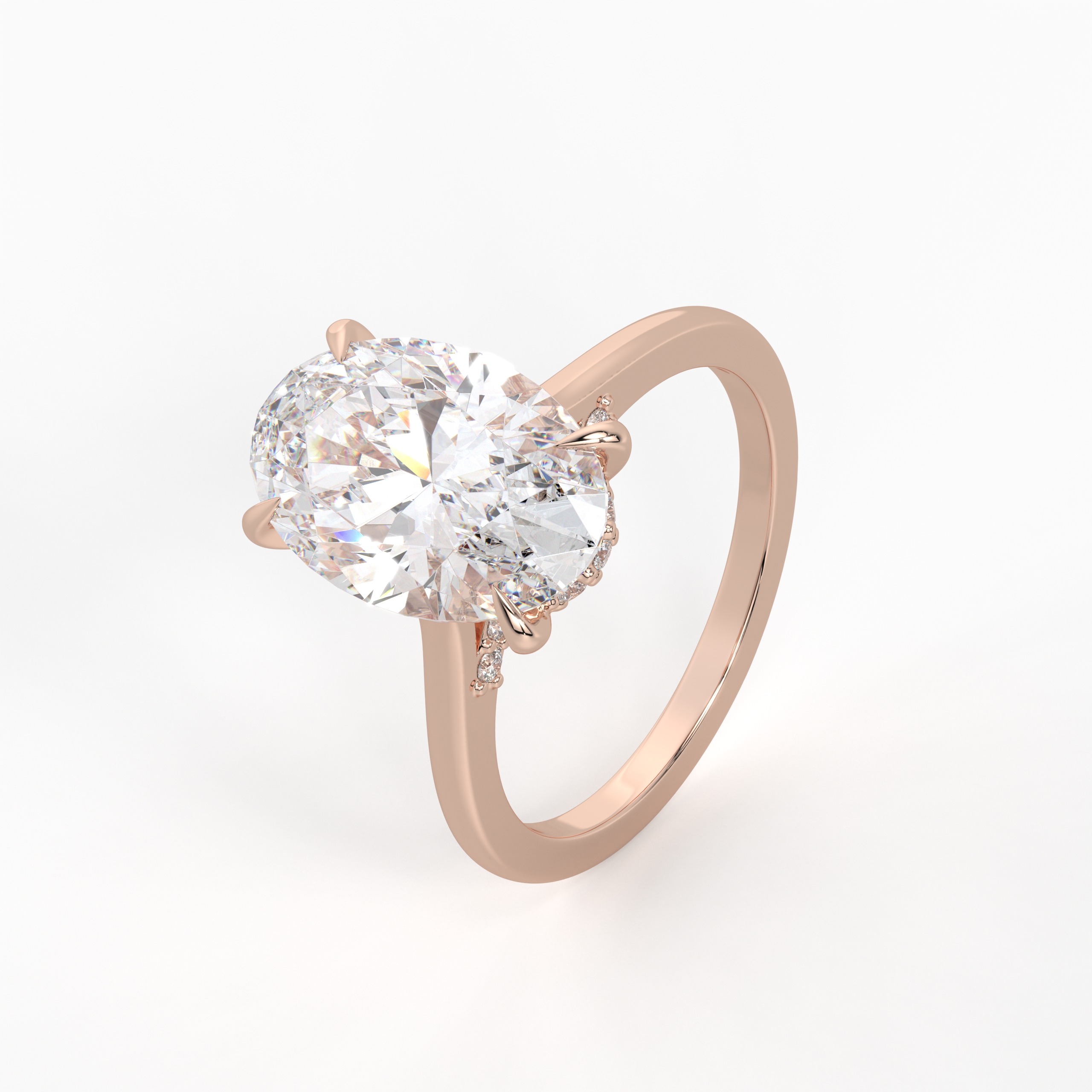 Inspired by soft curves and endless brilliance, the Lunaria Oval Diamond Ring showcases a luminous oval-cut center stone in a sleek, minimal setting. The design blends modern sophistication with classic romance, making it perfect for engagements or cherished milestones.