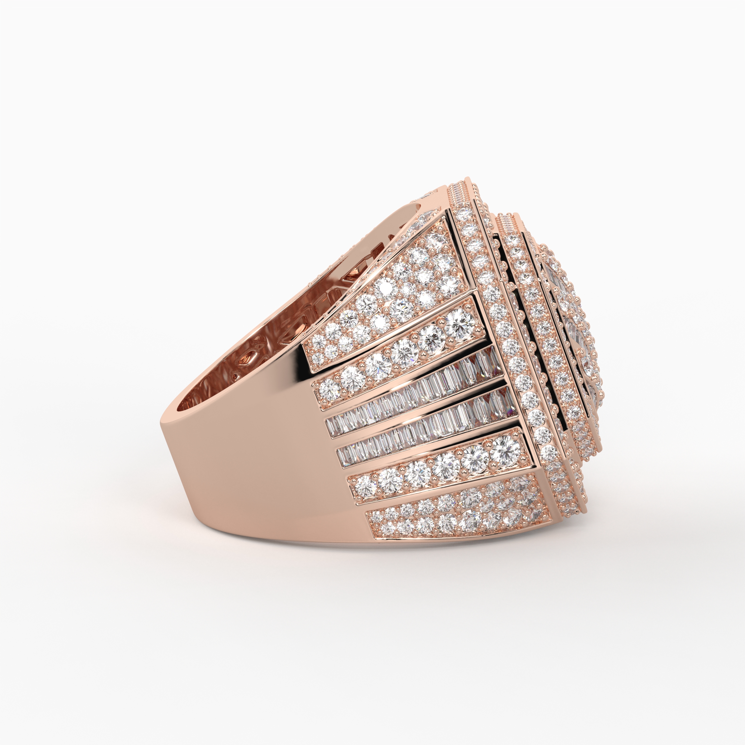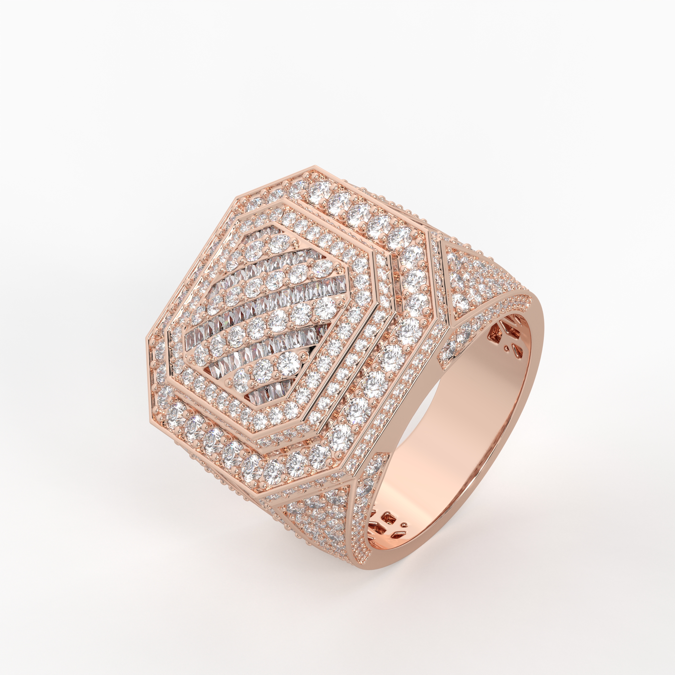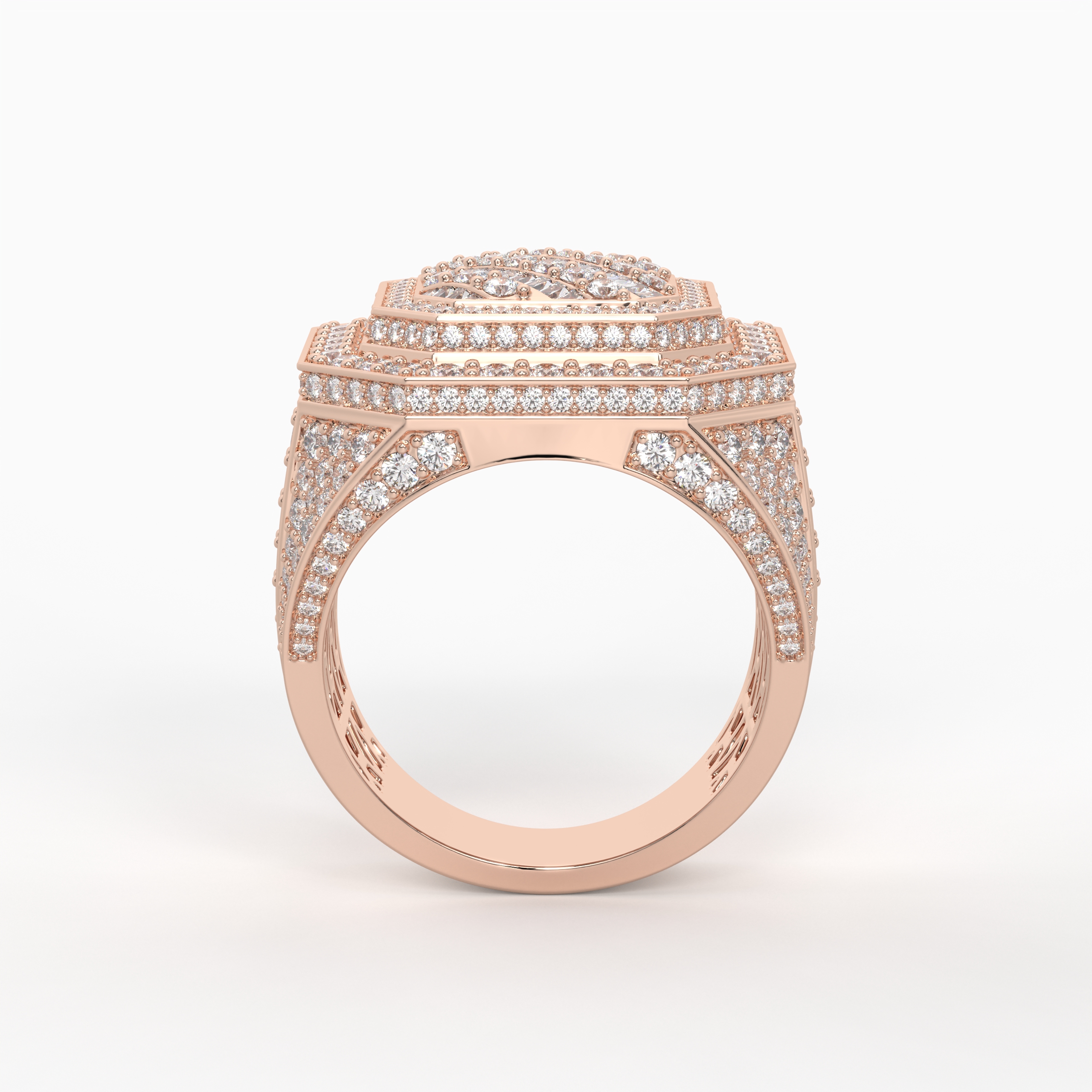Built for dominance, the Kingpin Iced-Out Ring features a fully flooded diamond surface set in solid gold. Designed to shine from every angle, this bold hip-hop statement piece reflects power, confidence, and street royalty.