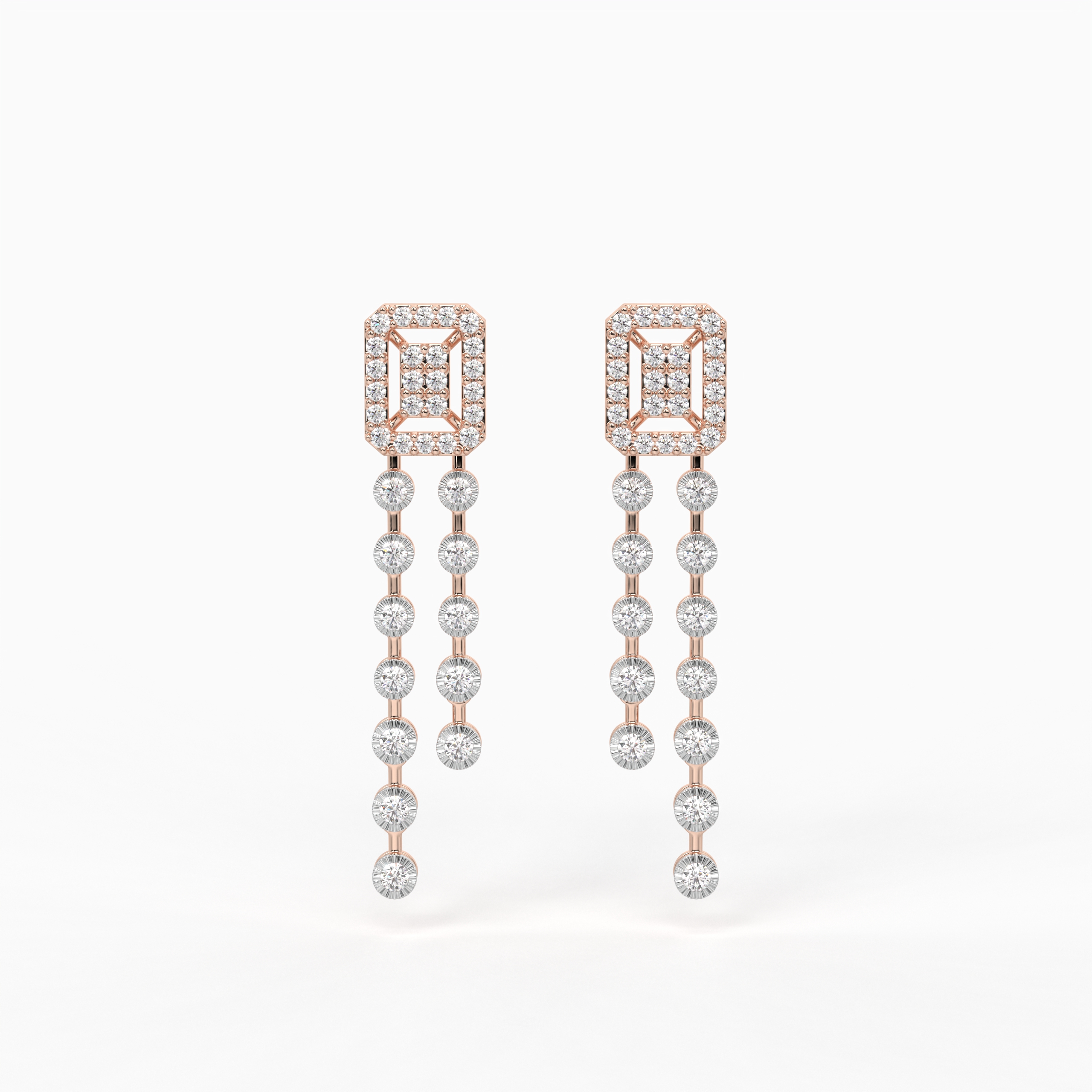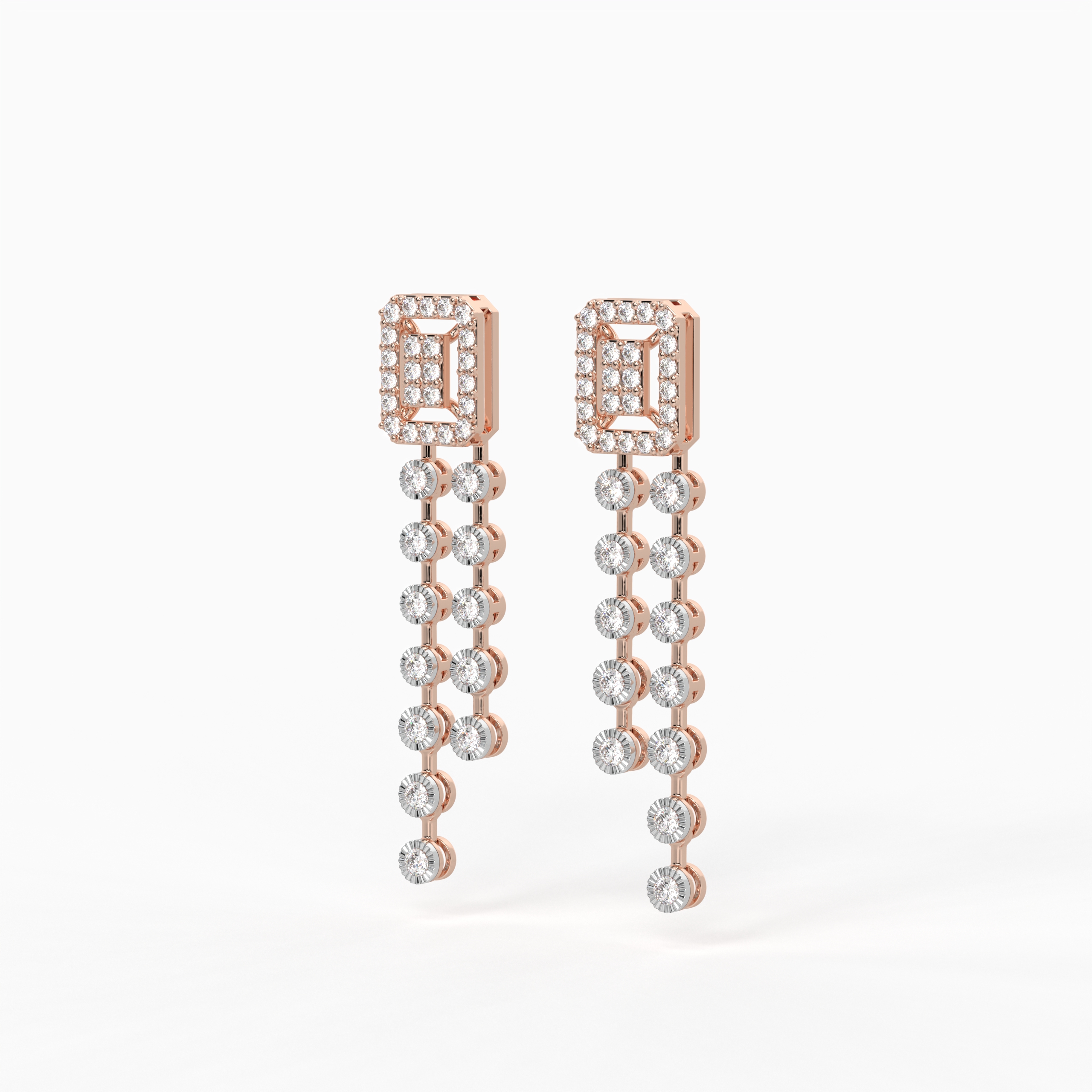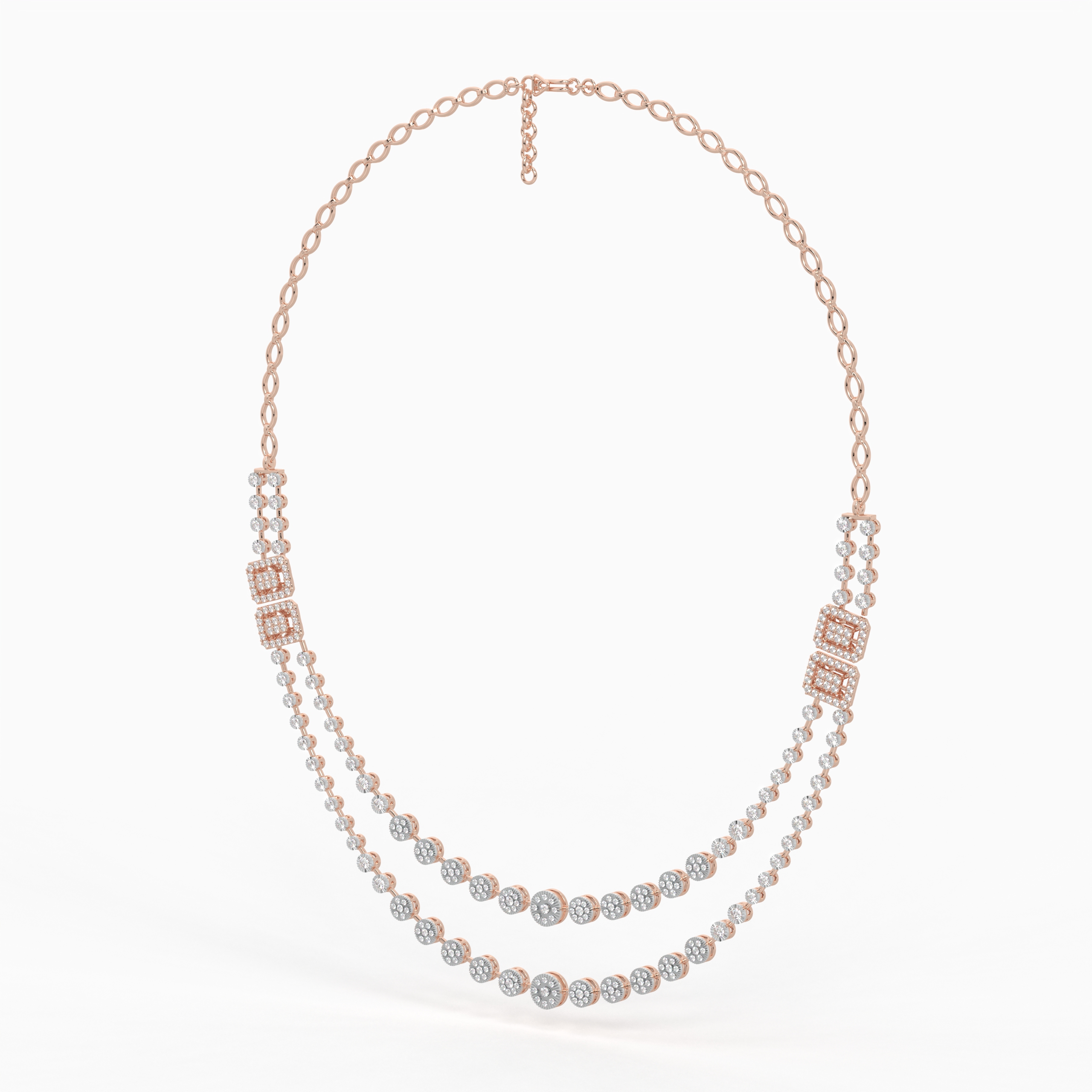 The Eterna Double Glow Necklace combines innovative illusion setting with a bold twin-row design. The layered diamond strings enhance depth and brilliance, delivering a glamorous yet graceful look. A timeless piece that embodies confidence and celebration.