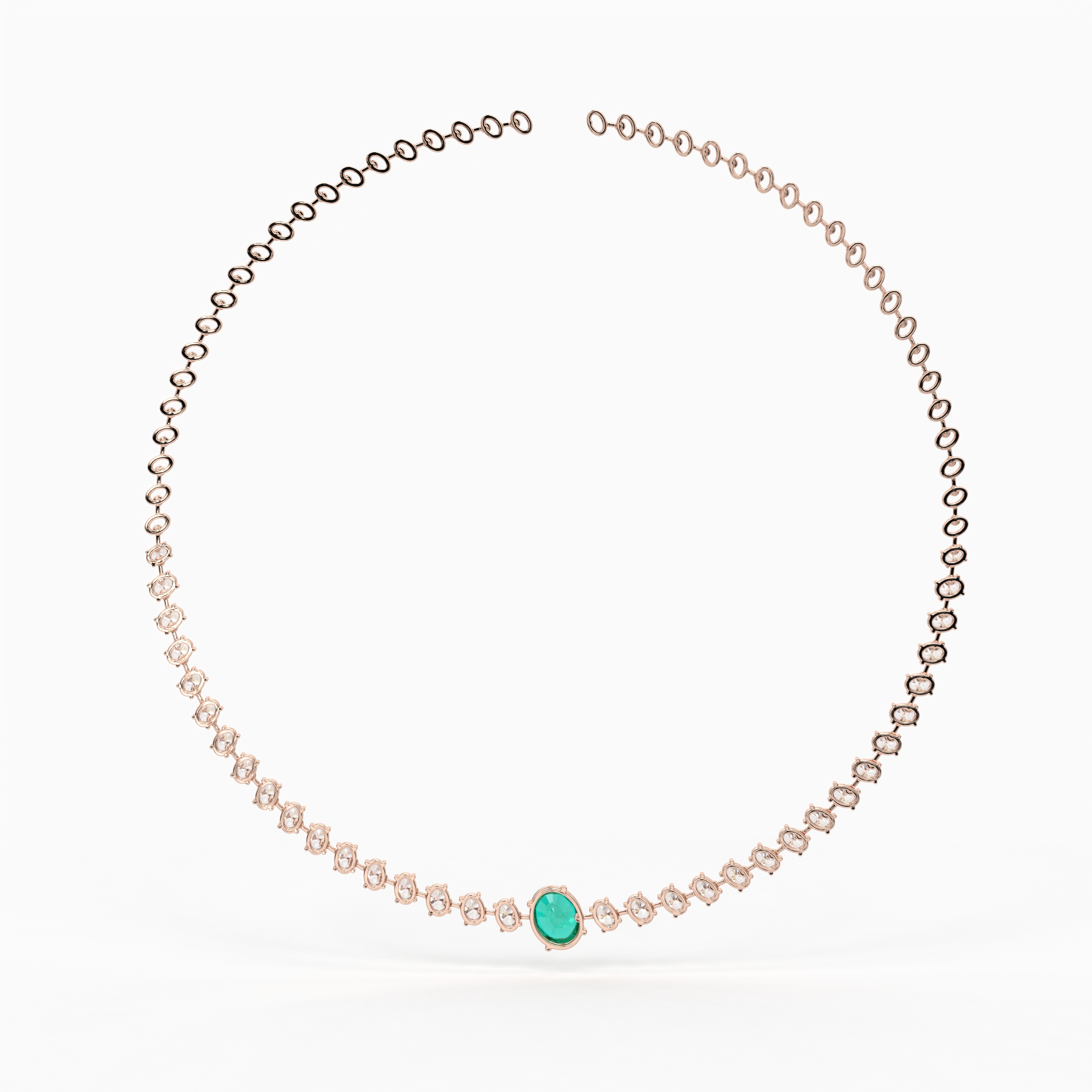 The Sylvara Radiant Drop blends vibrant elegance with delicate brilliance. A deep green oval center stone is elevated by the shimmering presence of an oval solitaire diamond, forming a striking harmony of glow and depth. A refined piece crafted for grand occasions and lasting impressions.